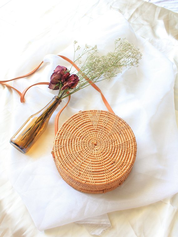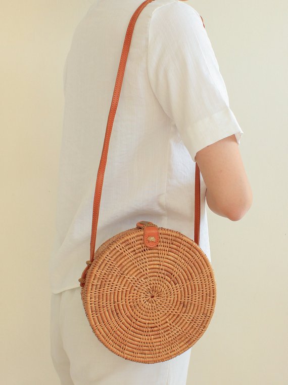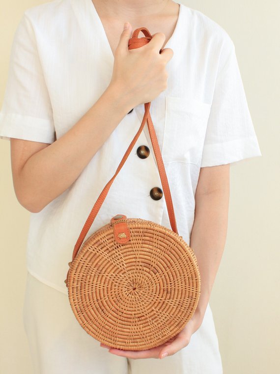 Womens round rattan bag